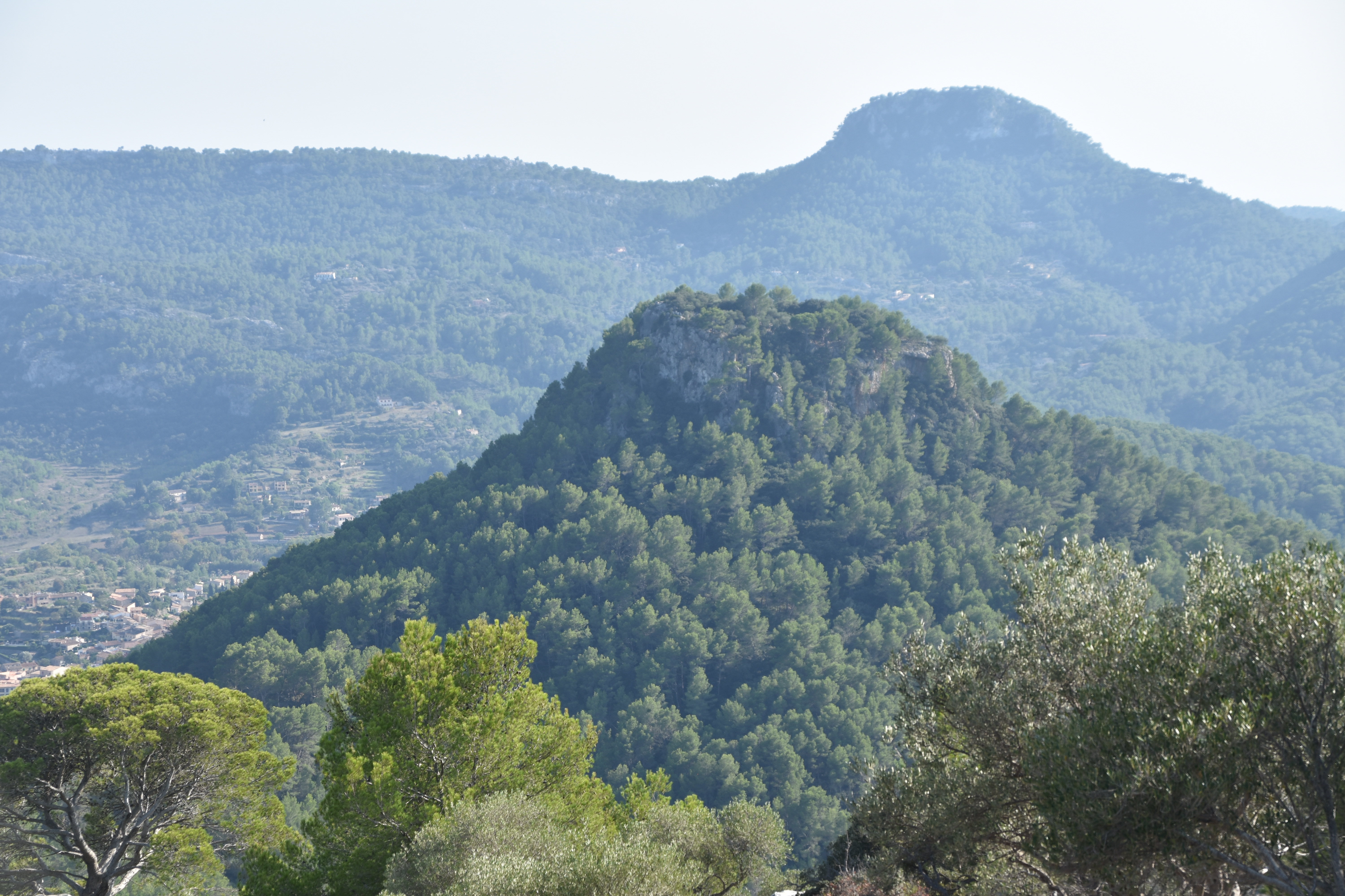 En la tercera curva de la carretera 25 min., encontramos los indicadores de madera que nos conducen hacia los atajos -tramos del camino viejo- que nos sacarán del asfalto y nos harán más agradable esta primera parte de la ruta. 50 min. Alcanzamos el Coll des Grau (468 m), abierto a partir de la construcción de la carretera, durante la segunda mitad del siglo XIX. Bajamos unos metros en dirección a Esporles y enseguida -dos curvas más abajo del cerro que se abre hacia el valle de Superna- salimos de la carretera por el camino de la Campaneta.
